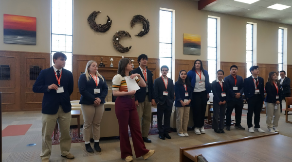 随后,我们走进了庄严而宁静的Kimberly Chapel,恰逢乐团正在排练。一道柔和的光恰好落在教堂前面的十字架下,仿佛回应着空气中回荡的旋律。音乐缓缓流淌,交织出一份神圣与温柔,也悄然传递着Wayland精神——敬畏、传承与创造。学生导游细心地为我们介绍了教堂的多重用途:每周一举行全校集会,每周三则有Chapel聚会,平时这里也是乐团的排练场所。如此富有仪式感的空间,是韦兰学子心灵的栖息地,也承载着校园文化的深厚底蕴。