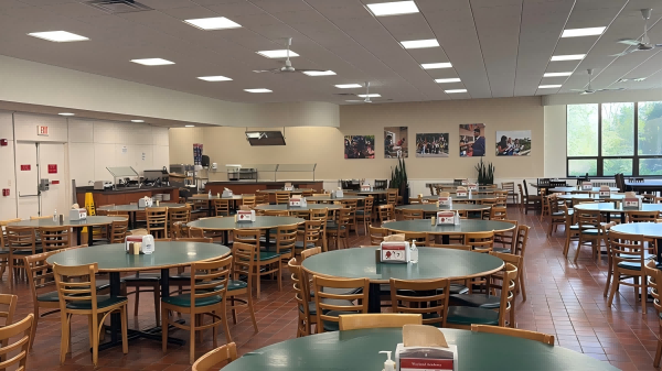 我们随后来到了多功能的Pickard Hall,首先走进的是校园餐厅。整个用餐区宽敞明亮,以木质圆桌和椅子为主,温润的色调营造出如家般的亲切氛围。每日餐厅提供多样化、兼顾营养与口味的风味餐食,充分考虑不同文化背景学生的饮食需求,每一餐都体现出学校对学生身心健康的细致关怀。