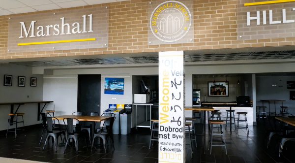 餐厅内环境宽敞,餐桌和椅子整齐摆放,这里是低年级和中学年级学生的主要就餐区域,而高年级学生可以选择在其他地方就餐。每天午餐时,餐厅的桌椅会被摆放出来,供学生们用餐。此外,餐厅还提供健康的食物选择,特别为有食物过敏或不耐症的学生提供了专门的帮助,以确保他们能够安全地选择合适的食物。