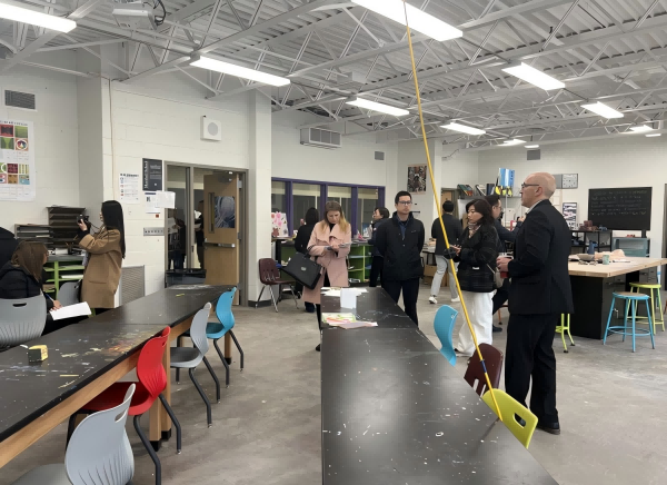 接着,我们参观了学校的艺术教室。Marshall School的艺术课程涵盖了多个领域,从传统的绘画和雕塑到现代的数字艺术与陶艺,学生们可以在这里自由发挥他们的创意。学校提供了一个非常灵活的环境,让学生们能够根据自己的兴趣选择艺术方向,创作个人作品,甚至为未来进入艺术学校准备作品集。许多学生也选择参加AP艺术课程,进一步提升自己的艺术水平。