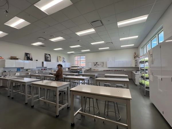 教学楼自2019年起投入使用,投资约1500万美元,新增了三个大学水平的STEM实验室,设施先进,教学资源丰富。实验桌面与柜面均为白板,布局灵活,配备声控技术,老师可一键将内容推送至学生的Chromebook设备,极大提升了课堂互动与效率。我们参观了以下几个学术项目: